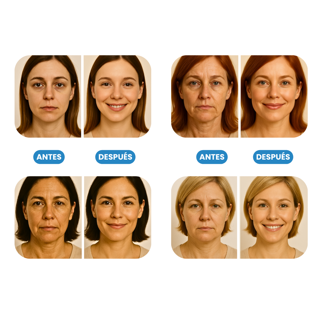 La mayoría de las usuarias nota una mejor textura y firmeza desde la primera semana, y una reducción visible de arrugas entre los 14 y 21 días de uso constante.