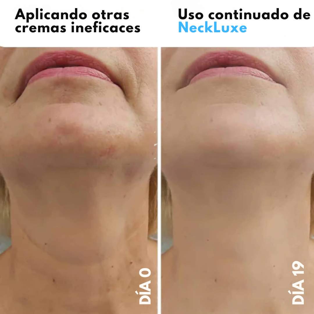 Tu cuello merece el mismo cuidado que su rostro. NeckLuxe está diseñada para combatir la flacidez de la piel, las líneas de expresión y el tono irregular, devolviéndole un aspecto más firme, liso y terso.