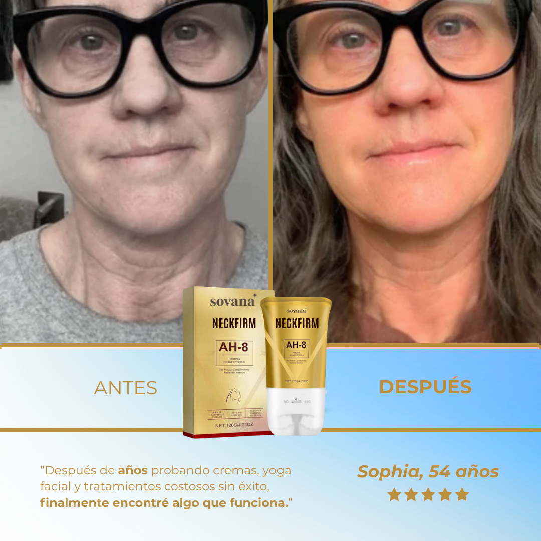 Sabemos que hay muchos productos que prometen y no cumplen. Por eso, NeckFirm™ está formulada con ingredientes clínicamente probados como el Acetyl Hexapeptide-8, usados en tratamientos de estética avanzada. Además, los resultados están avalados por pruebas reales y miles de clientas satisfechas.