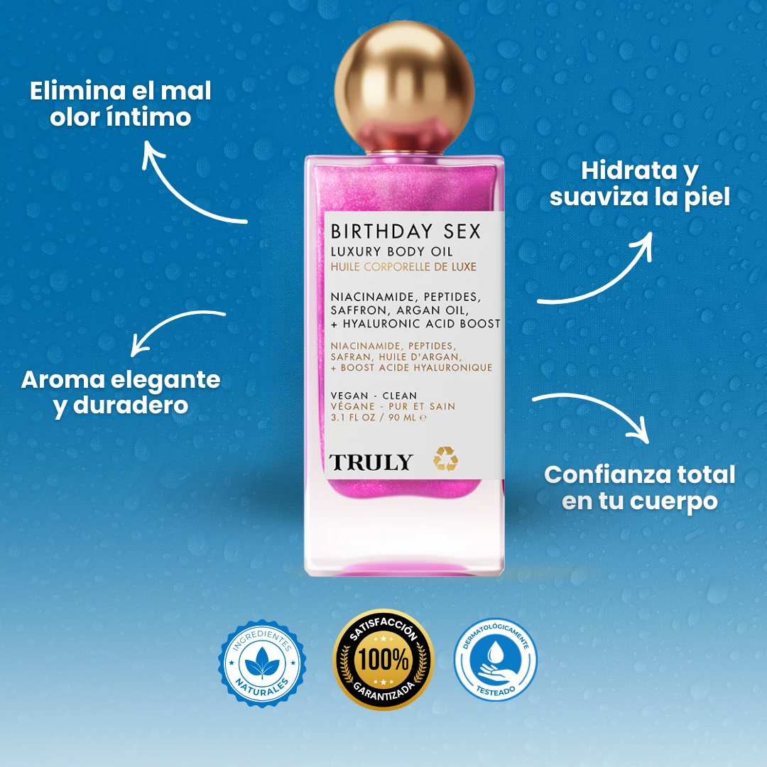 Esta es la gran diferencia: Birthday Sex neutraliza el mal olor desde la raíz, no lo disimula. Los ingredientes naturales (como la niacinamida) trabajan sobre las bacterias que causan el olor, mientras el aceite de argán y el ácido hialurónico mantienen tu piel sana y equilibrada. El aroma elegante es un plus, pero el verdadero trabajo es eliminar la causa del problema.