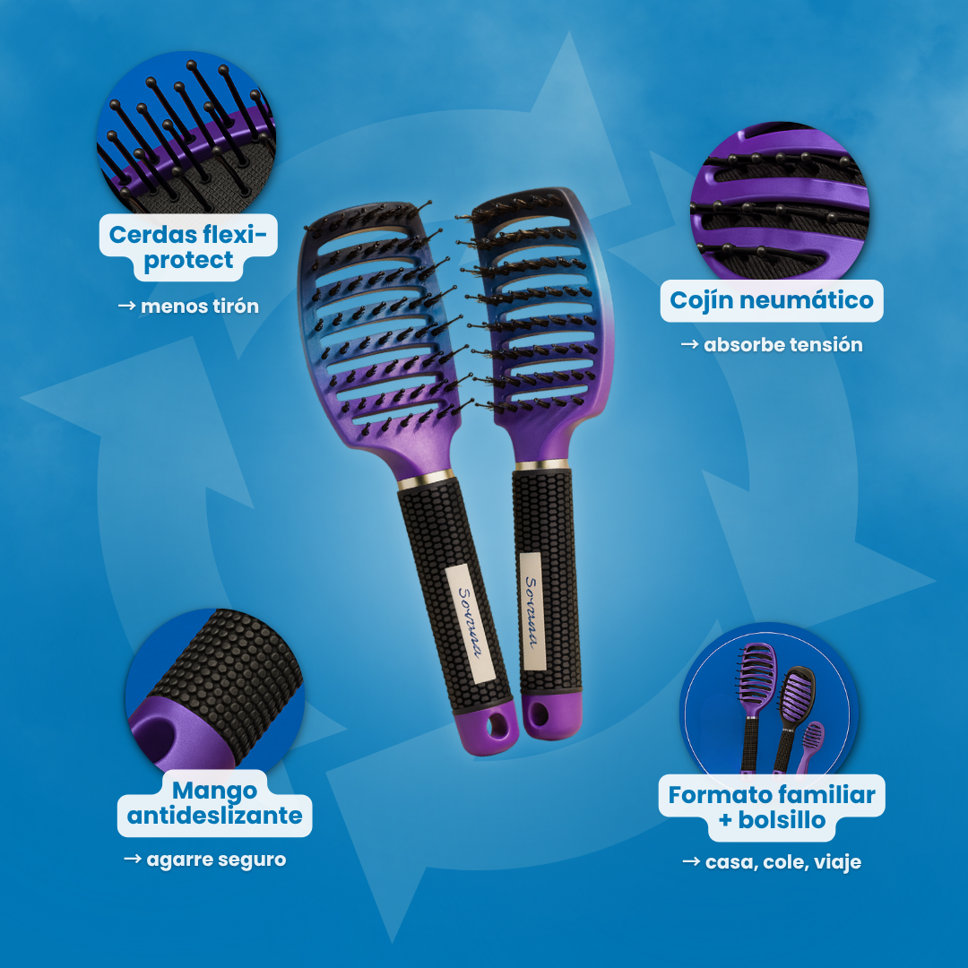 Cada detalle de Sovana Ppbrush fue diseñado para cuidar, no castigar. Sus cerdas flexibles se adaptan a tu tipo de cabello, desenredando sin esfuerzo y sin dolor. Resultados suaves, sin quiebre, y en la mitad del tiempo.