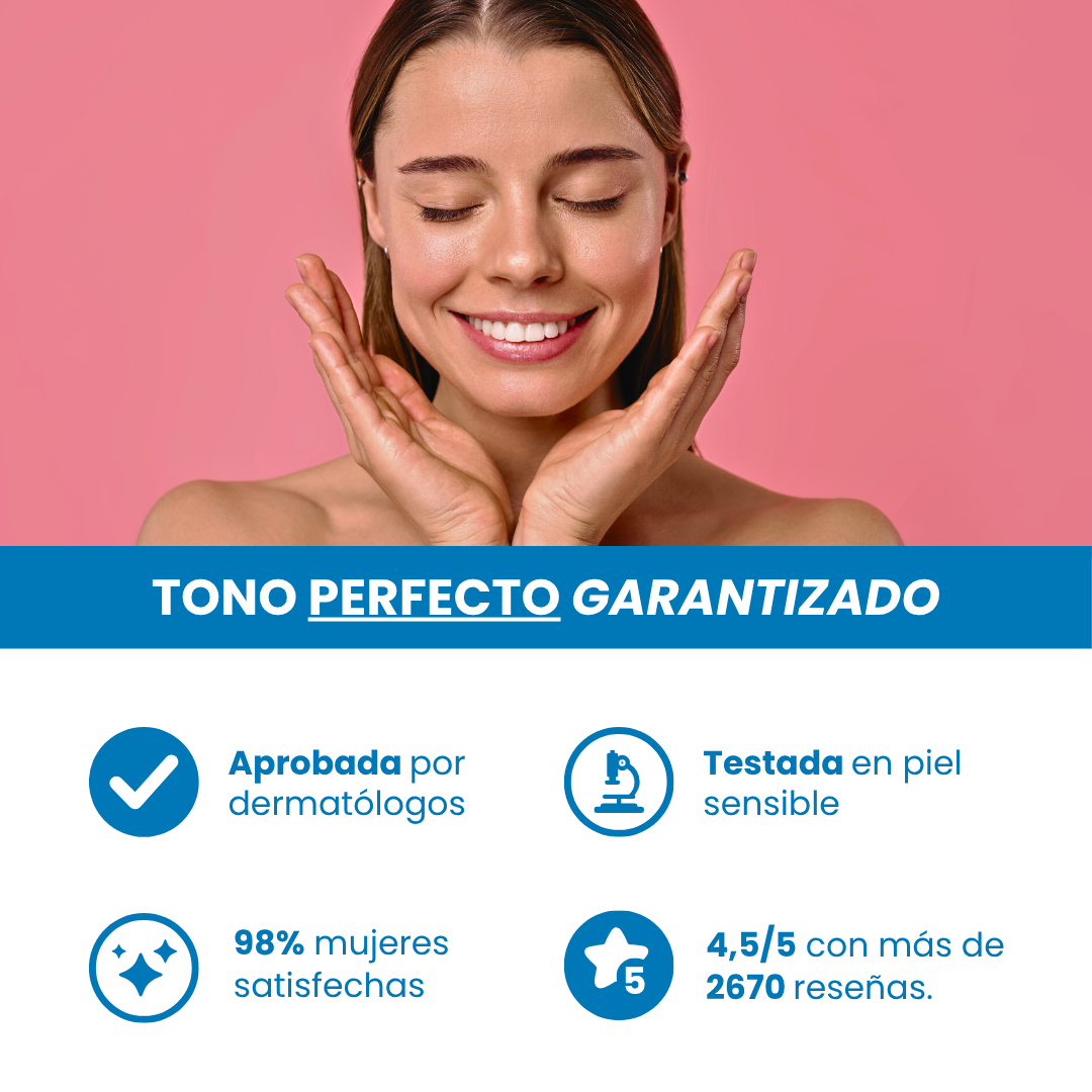 Esto permite que el tono final se vea perfectamente integrado — sin contraste en cuello ni efecto máscara.